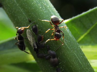 gern lässt die Blattlaus sich nun melken.